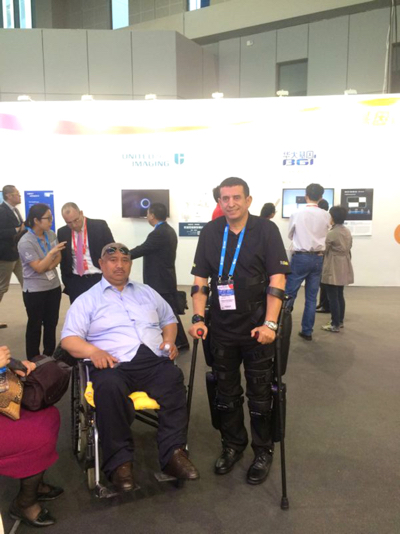 会展展位全貌 户外广告 酷科技展区 展位产品沙龙 SDS非手术脊柱减压系统 SIT脊柱脉冲治疗仪 表面肌电分析治疗系统 Rewalk下肢外骨骼康复机器人